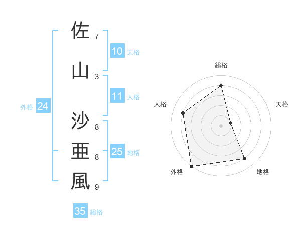 佐山 沙亜風さんを姓名の画数から五運を鑑定