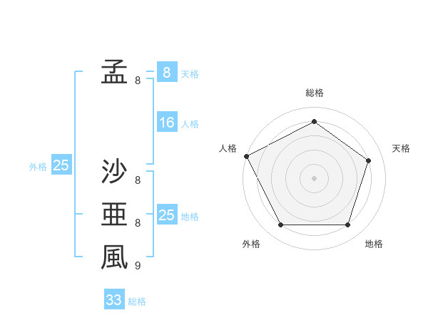 孟 沙亜風さんを姓名の画数から五運を鑑定