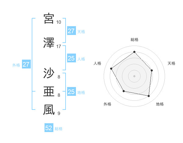 宮澤 沙亜風さんを姓名の画数から五運を鑑定