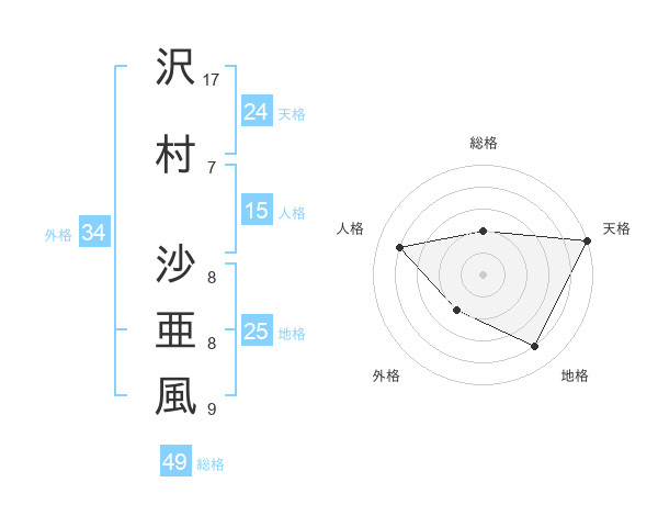 沢村 沙亜風さんの天格は24画の5点!