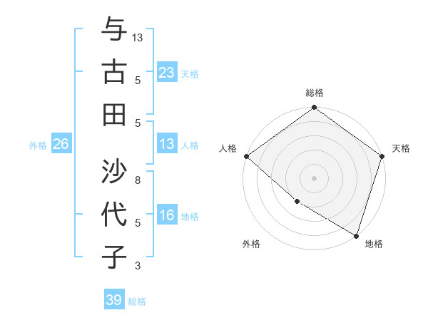 与古田 沙代子さんを姓名の画数から五運を鑑定