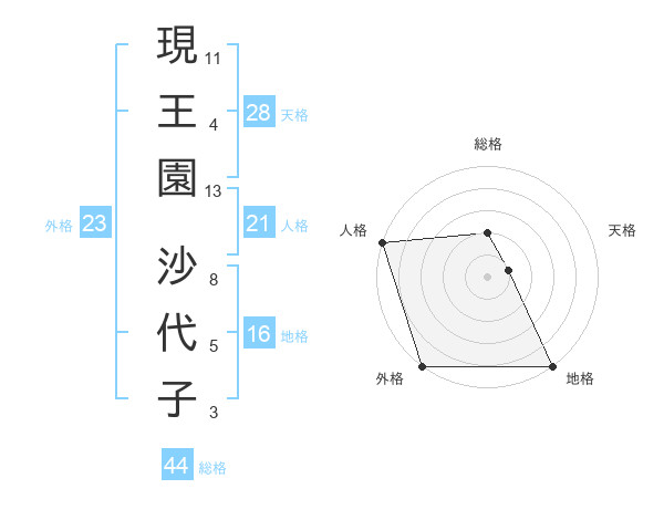 現王園 沙代子さんを姓名の画数から五運を鑑定