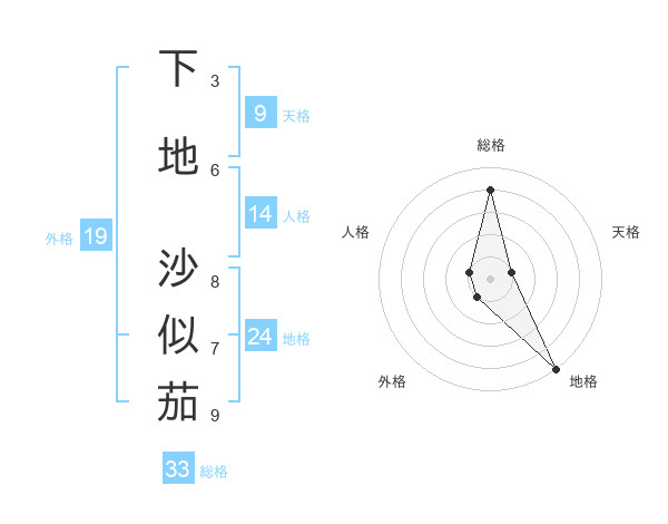 下地 沙似茄さんを姓名の画数から五運を鑑定