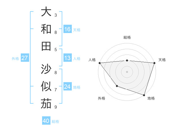 大和田 沙似茄さんを姓名の画数から五運を鑑定