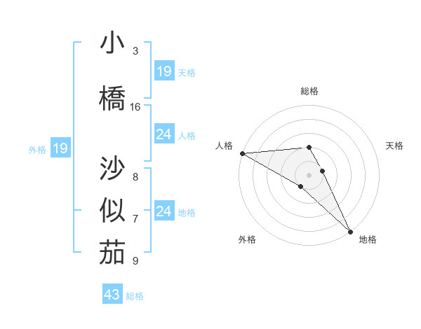 小橋 沙似茄さんを姓名の画数から五運を鑑定