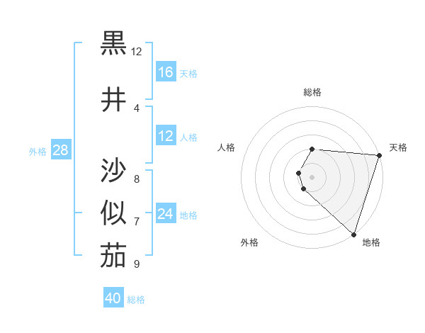 黒井 沙似茄さんを姓名の画数から五運を鑑定