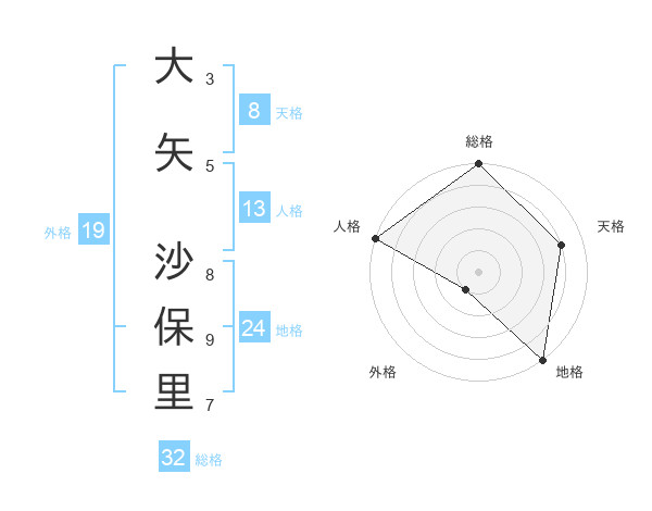大矢 沙保里さんを姓名の画数から五運を鑑定