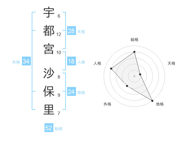 宇都宮 沙保里さんを姓名の画数から五運を鑑定