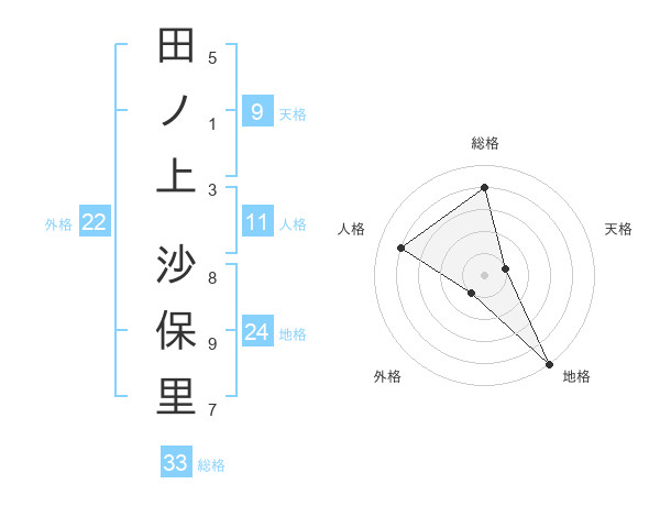 田ノ上 沙保里さんの総格は33画の4点!