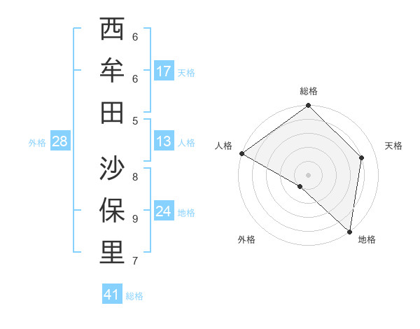 西牟田 沙保里さんを姓名の画数から五運を鑑定
