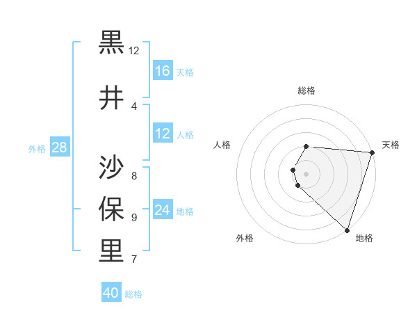 黒井 沙保里さんの天格は16画の5点
