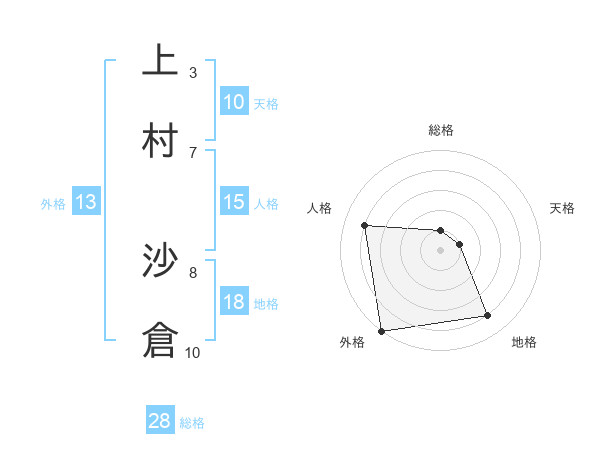 上村 沙倉さんを姓名の画数から五運を鑑定