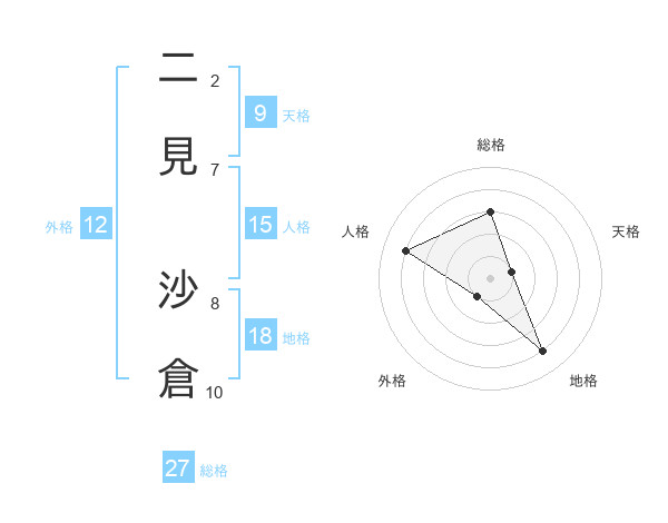 二見 沙倉さんの総格は27画の3点!