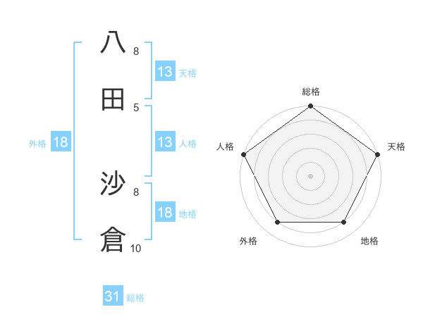 八田 沙倉さんを姓名の画数から五運を鑑定