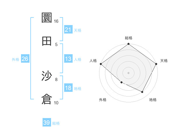 圜田 沙倉さんを姓名の画数から五運を鑑定
