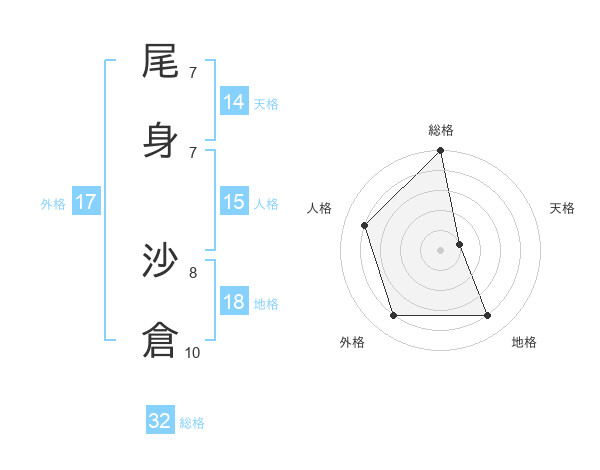 尾身 沙倉さんを姓名の画数から五運を鑑定