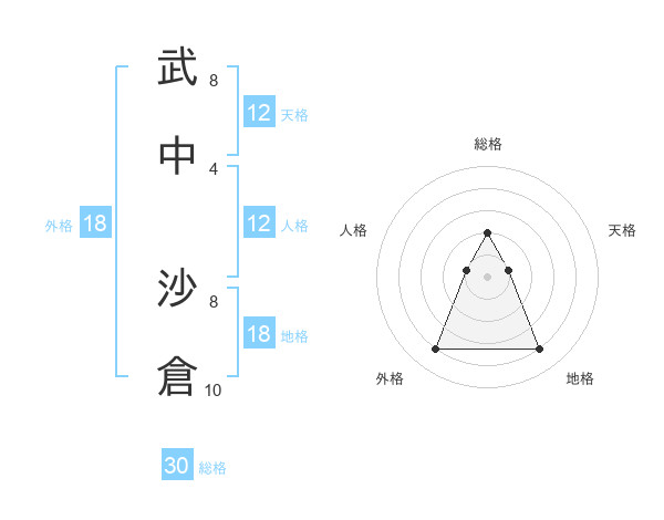 武中 沙倉さんの総格は30画の2点!