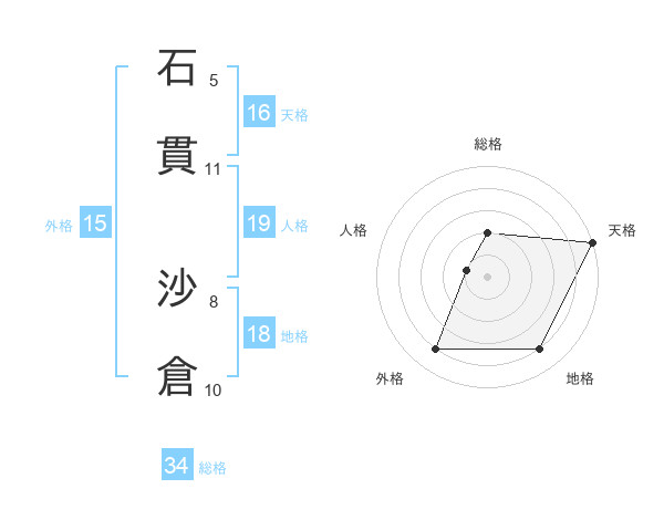 石貫 沙倉さんの総格は34画の2点!