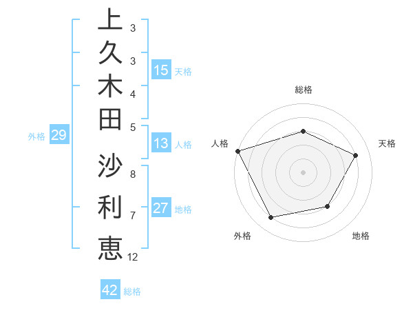上久木田 沙利恵さんを姓名の画数から五運を鑑定