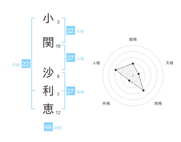 小関 沙利恵さんを姓名の画数から五運を鑑定