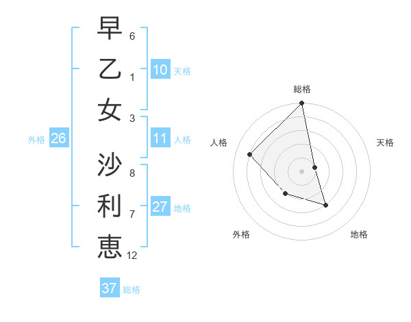 早乙女 沙利恵さんを姓名の画数から五運を鑑定