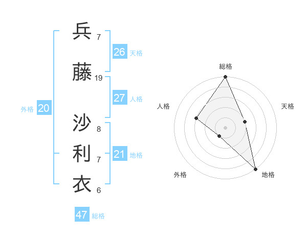 兵藤 沙利衣さんを姓名の画数から五運を鑑定