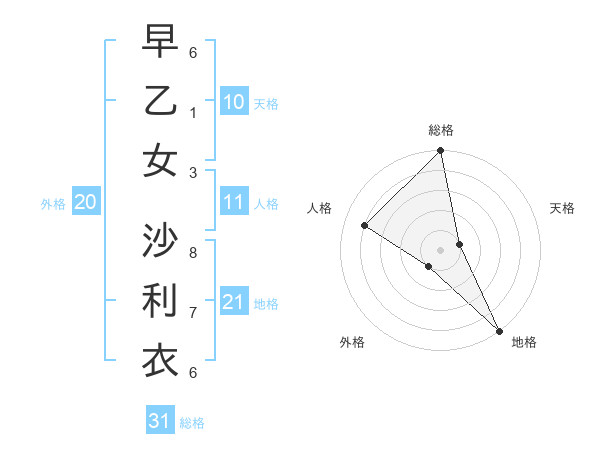 早乙女 沙利衣さんを姓名の画数から五運を鑑定