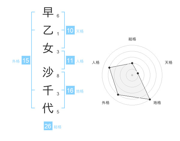 早乙女 沙千代さんを姓名の画数から五運を鑑定