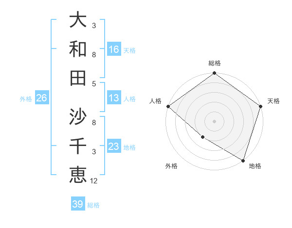 大和田 沙千恵さんを姓名の画数から五運を鑑定
