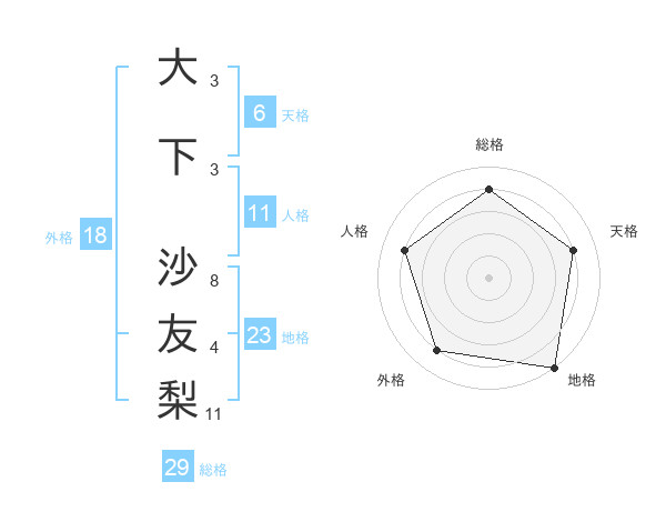 大下 沙友梨さんを姓名の画数から五運を鑑定