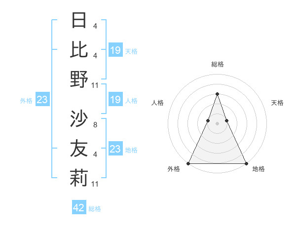 日比野 沙友莉さんを姓名の画数から五運を鑑定