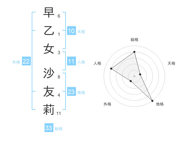 早乙女 沙友莉さんを姓名の画数から五運を鑑定