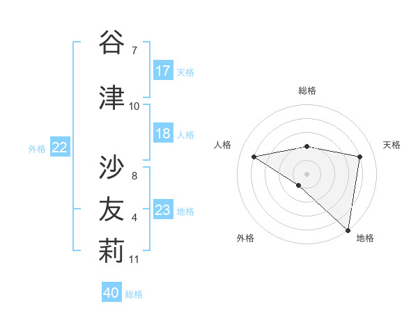 谷津 沙友莉さんを姓名の画数から五運を鑑定
