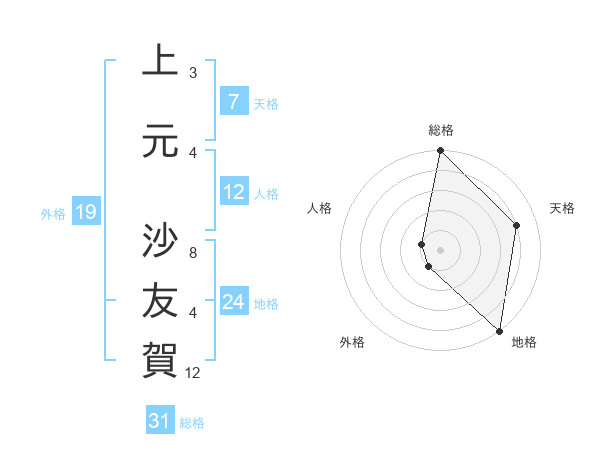 上元 沙友賀さんの総格は31画の5点!