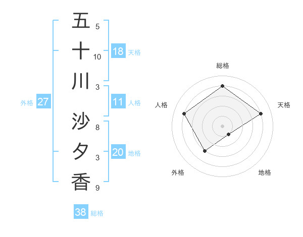 五十川 沙夕香さんを姓名の画数から五運を鑑定