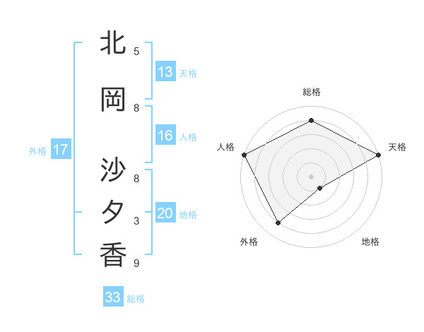 北岡 沙夕香さんを姓名の画数から五運を鑑定