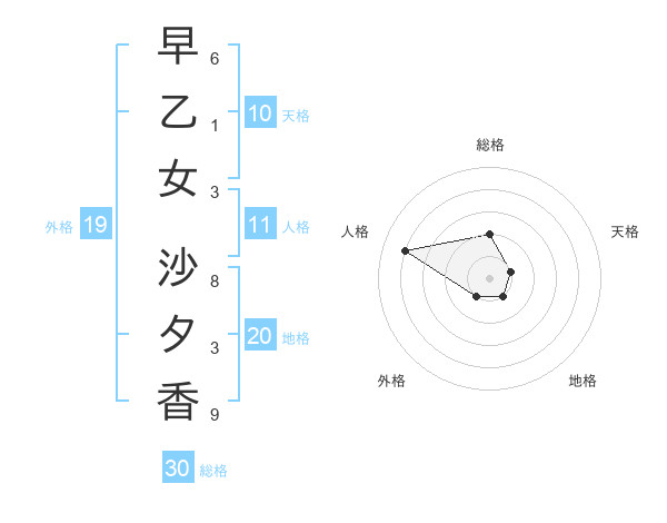 早乙女 沙夕香さんの総格は30画の2点