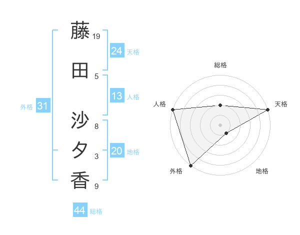 藤田 沙夕香さんを姓名の画数から五運を鑑定