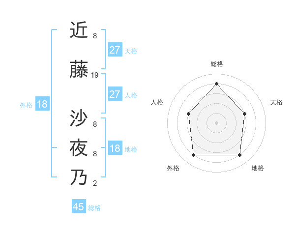 近藤 沙夜乃さんの総格は45画の4点!