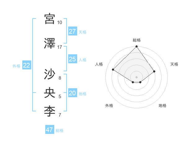 宮澤 沙央李さんの総格は47画の5点!