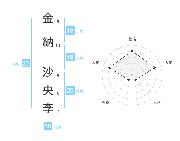 金納 沙央李さんの総格は38画の4点!