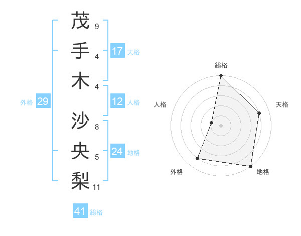 茂手木 沙央梨さんの総格は41画の5点