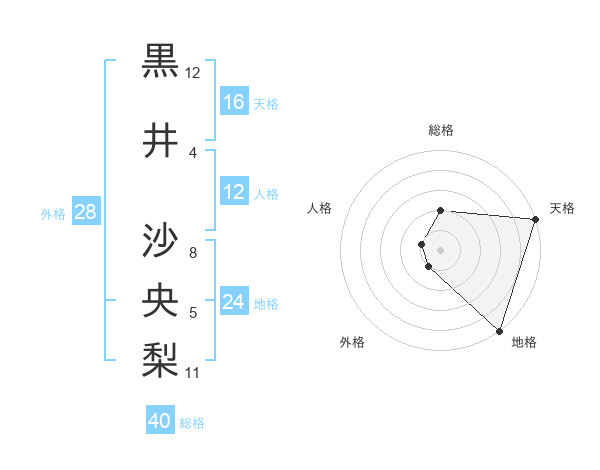 黒井 沙央梨さんを姓名の画数から五運を鑑定