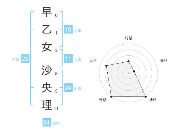 早乙女 沙央理さんを姓名の画数から五運を鑑定