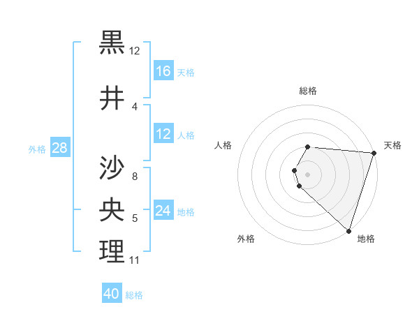 黒井 沙央理さんを姓名の画数から五運を鑑定
