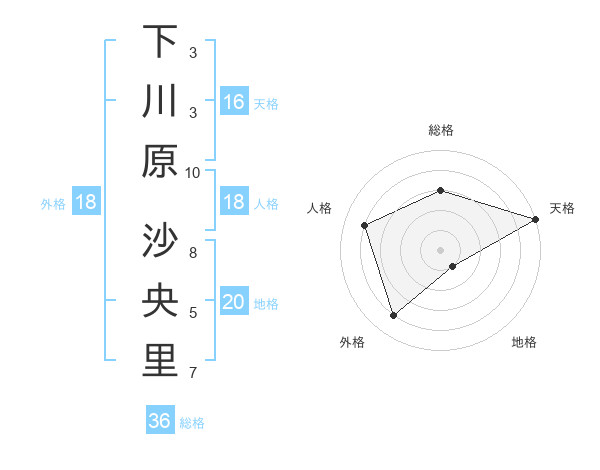 下川原 沙央里さんを姓名の画数から五運を鑑定