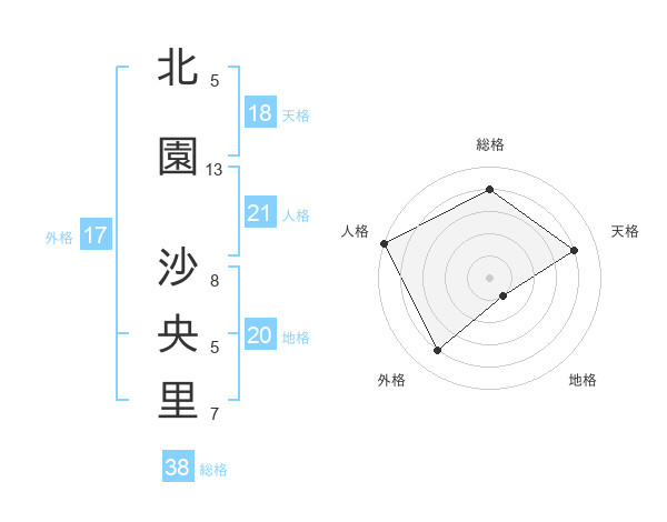 北園 沙央里さんの天格は18画の4点!