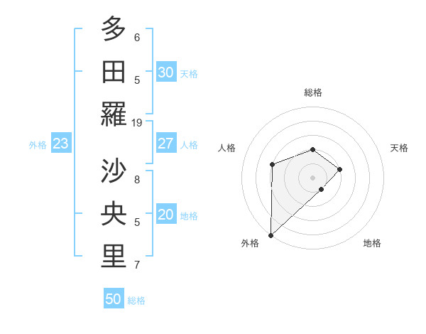 多田羅 沙央里さんを姓名の画数から五運を鑑定
