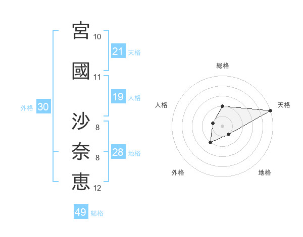 宮國 沙奈恵さんの天格は21画の5点!