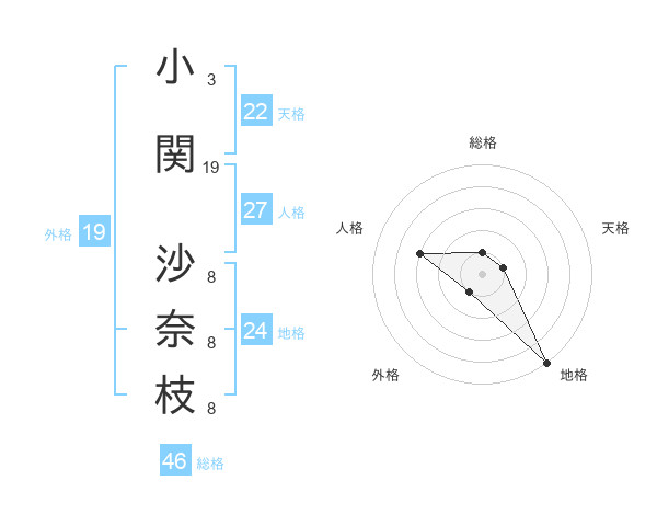 小関 沙奈枝さんの天格は22画の1点!